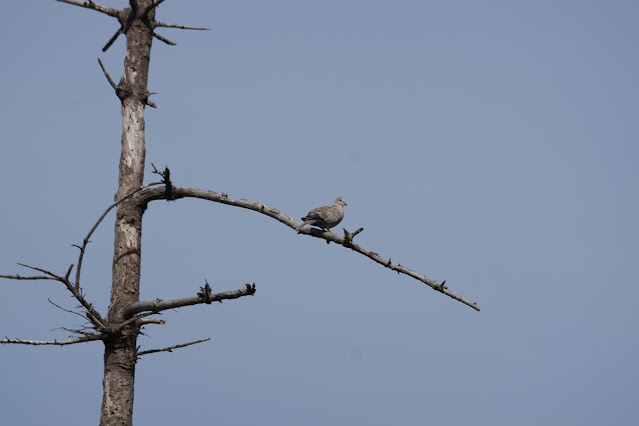 灰斑鳩原生於歐亞大陸(但台灣沒有),被歐洲人引進到加勒比海的巴哈馬群島,逐漸從佛羅里達往北繁衍,至今廣布於美加。所以這件事又提醒熊爸,在國外即使是看起來尋常的鳥,還是要拍下來,不要太自以為是。